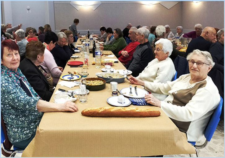 Plus d'une centaine de joyeux convives, à la salle des fêtes, se sont régalés d'un blanquette de la mer, proposée par le traiteur des Cantarelles (Yves Lumin de Mornas). Bien sûr, ce menu excellent et copieux faisait partie des repas mensuels de l'âge d'or mondragonnais.
