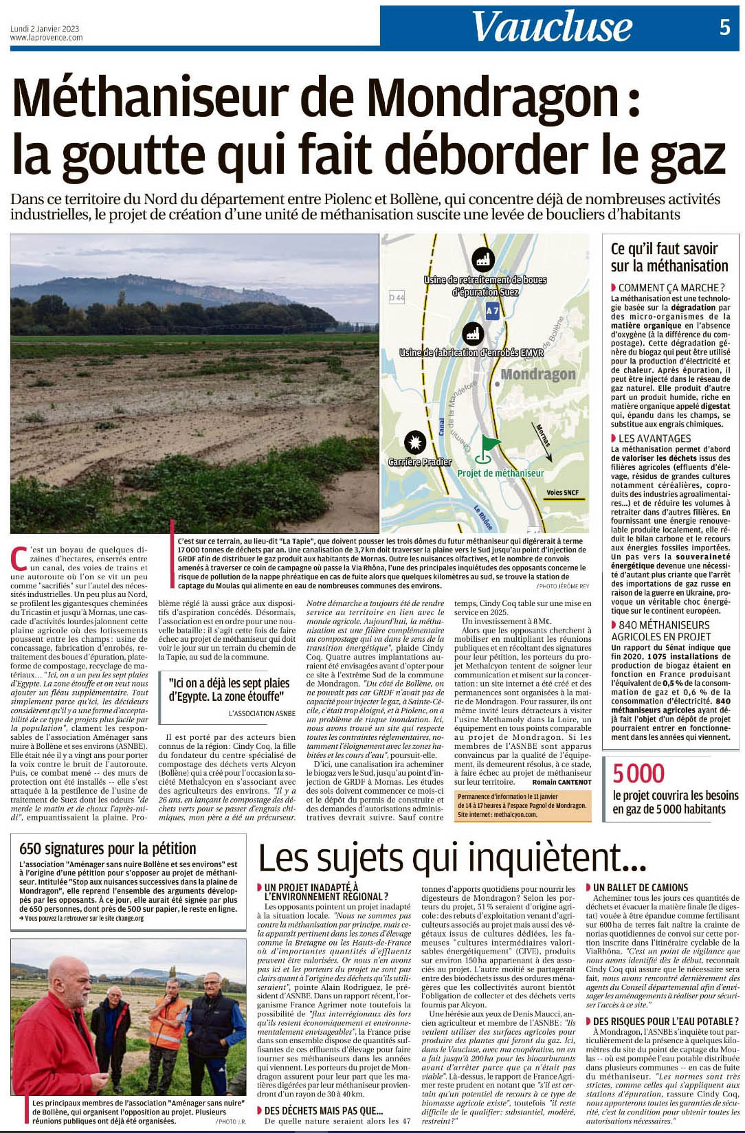 Environnement - Lundi 2 Janvier 2023 Non au méthaniseur (suite) |
