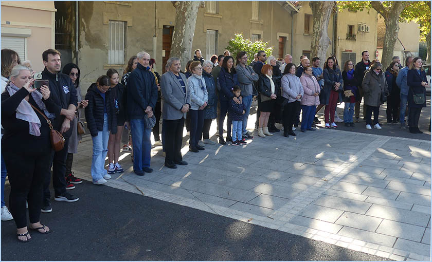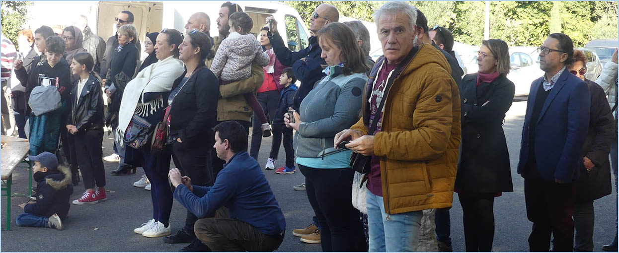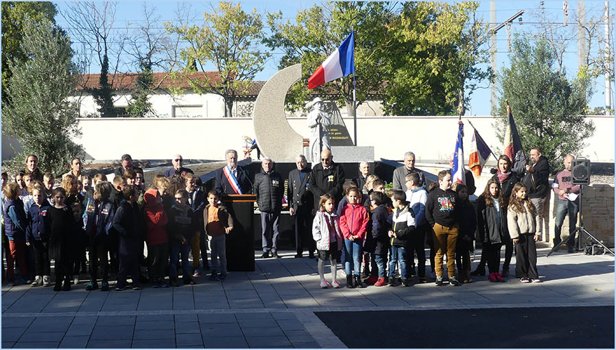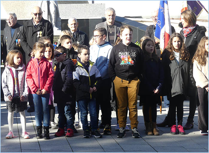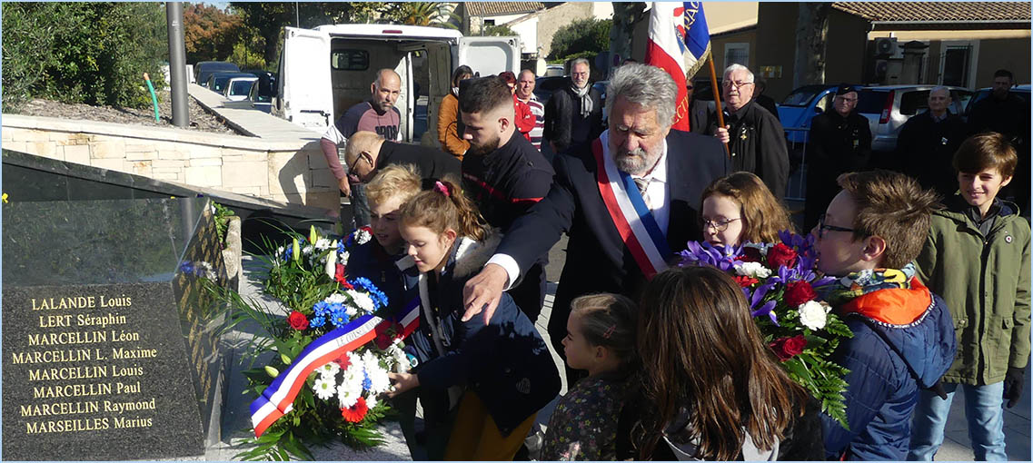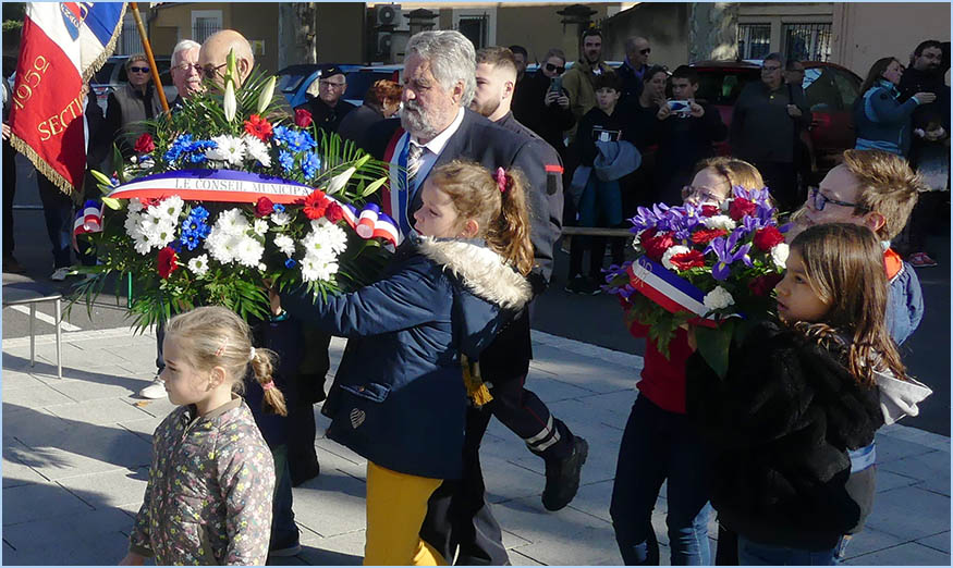 au dépôt de gerbes au pied du monument aux Morts (photo), puis