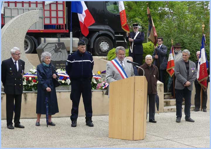 L’humidité ambiante et les drapeaux mouillés par la pluie n’ont pas empêché une cérémonie solennelle pour le 74ème anniversaire de la victoire sur l’idéologie nazie, telle que l’a retracée le maire Christian Peyron dans son discours, en présence d’anciens militaires, gendarmes, pompiers et d’une nombreuse population. Un dépôt de gerbes, la citation des héros mondragonnais morts pour la France, une minute de silence et trois musiques patriotiques (Nuit et brouillard, chant des partisans, hymne national) ont ponctué l'événement, conclu par le verre de l’amitié à l’hôtel de ville.