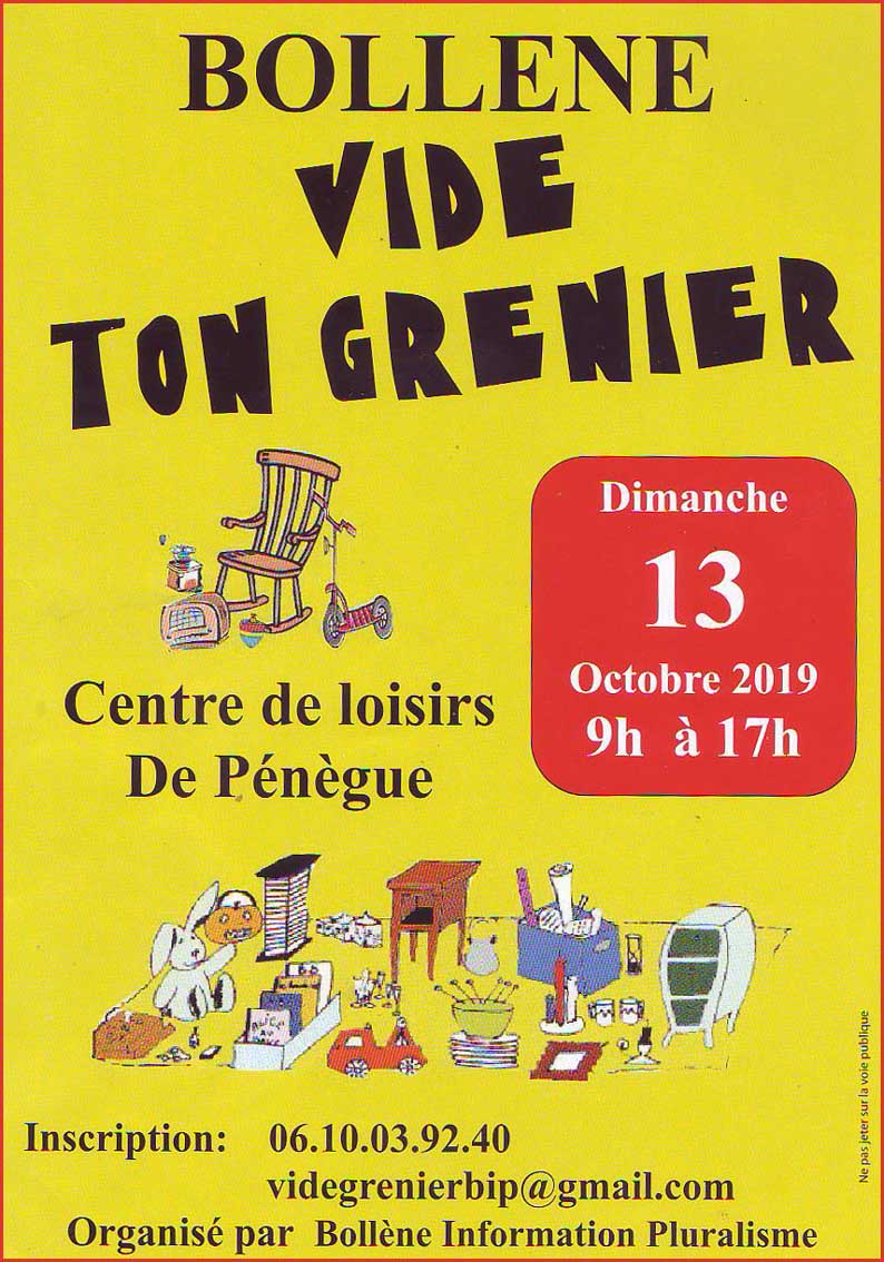 9h : ouverture du vide-grenier (inscriptions au 06.10.03.92.40).