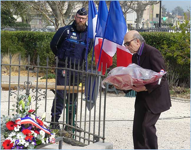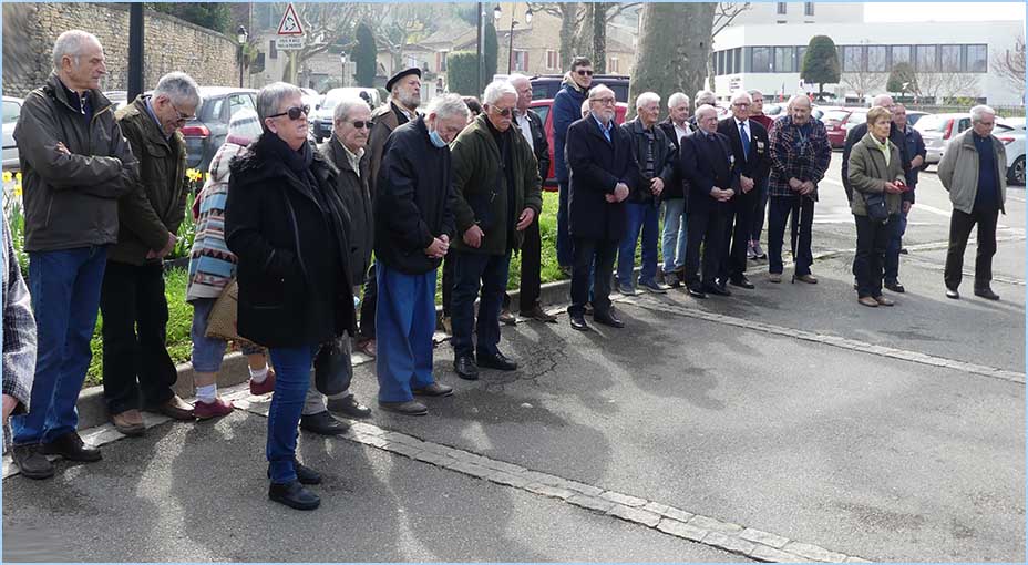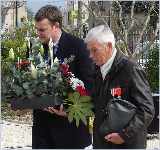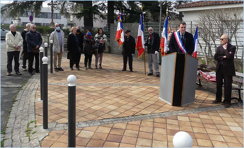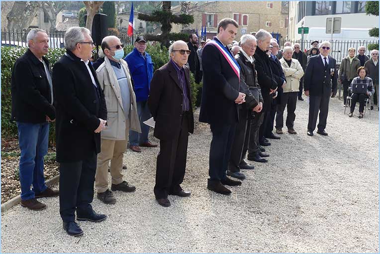 Le 60ème anniversaire du Cessez-le-feu en Algérie avait, à Bollène, un ton particulier, sous la férule d'Anthony Zilio, maire et président de l'intercommunalité, en présence de représentants d'associations d'anciens combattants, ARAC, ANACR et FNACA. Aucun représentant du Souvenir Français. Un dépôt de gerbes, divers chants patriotiques, et trois discours ont bien évoqué l'accord d'Evian mettant fin au conflit algérien. Mais le protocole renvoyait aussi à un incident plus récent. En 2019, la municipalité d'alors débaptisait la rue du 19 mars 1962, inaugurée par l'ancien maire Georges Sabatier, et renommée rue Hélie de Saint-Marc par Marie-Claude Bompard. Ceci au grand dam des Anciens Combattants. D'où une seconde cérémonie à proximité du Jardin du Souvenir, parallèlement à l'avenue Gambetta, pour restituer la vraie histoire locale avec le dévoilement d'une plaque nommant le passage piéton : Allée du 19 mars 1962. J. P.
