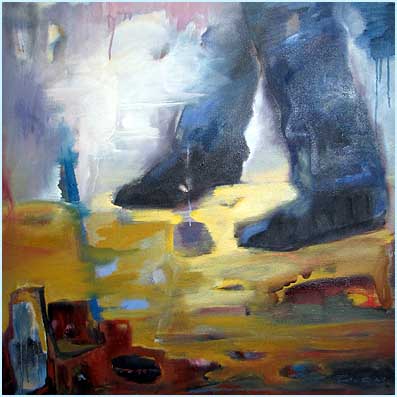 Souvent soporifique, le discours se teinte ici d'humour. L'artiste cherche un psy pour expliquer les hommes tronqués qui hantent ses virées urbanistiques. |