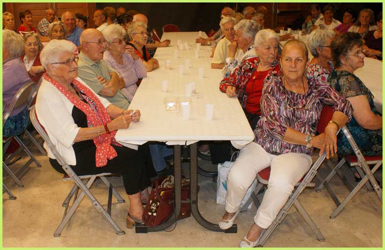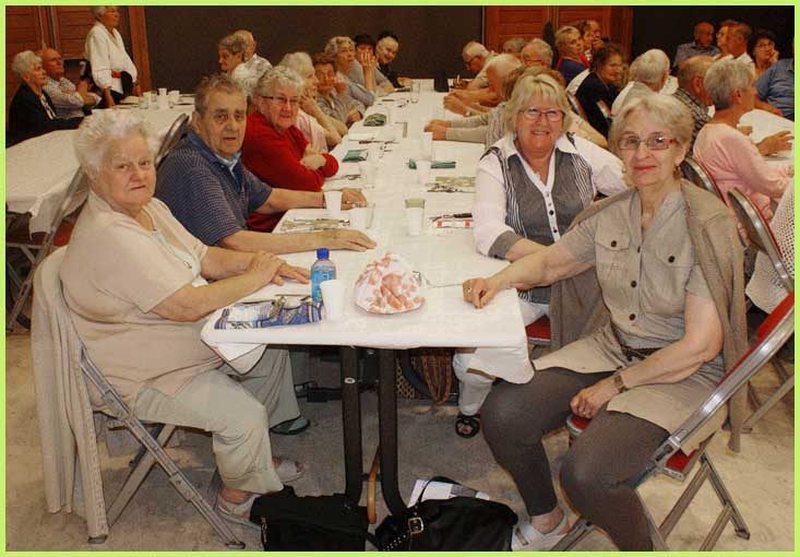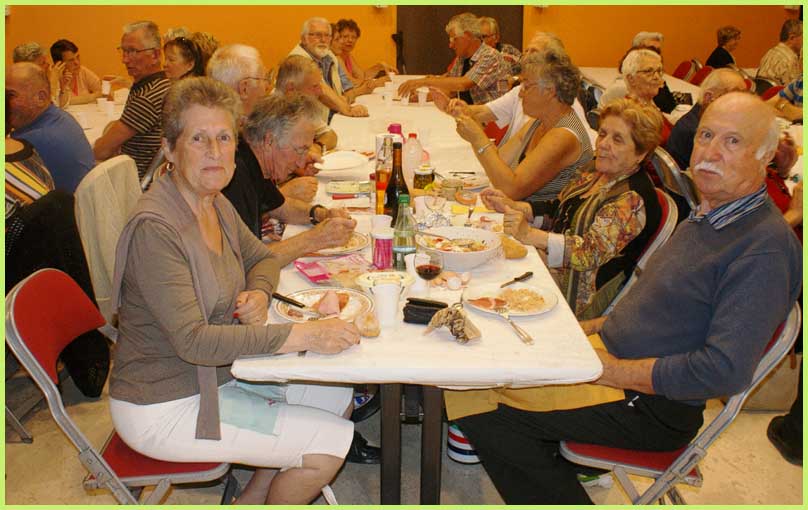 Au fil des tablées et d’une bonne humeur contagieuse.                            L’accueil humoristique de Madame le maire (à droite)