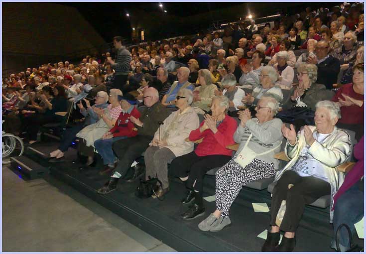 Venus des foyers 3ème âge de la Ville ou à titre individuel, les seniors bollénois étaient invités par le Centre communal d’action social (CCAS) à la fête des grands-mères. Ils ont fait le plein des gradins de la Cigalière et étaient chaleureusement accueillis par Marie-Claude Bompard, maire, en personne, et trois de ses adjointes. Un spectacle du style revue parisienne était à l’affiche, suivi de friandises et de boissons pétillantes. Sur le conseil de Madame le maire, l’assistance était encore conviée à de prochaines festivités, toujours gratuitement offertes, notamment lors des Polymusicales avec, en tête d’affiche, Hélène Ségara le vendredi 5 juillet à 21h, place de la Mairie.