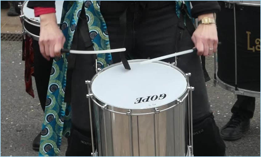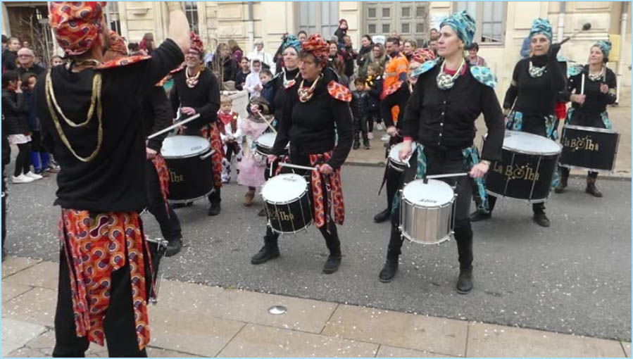 Bigarré à souhait et escorté d'une batucada brésilienne, le