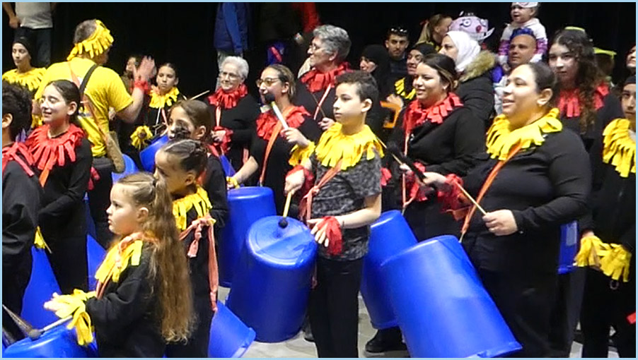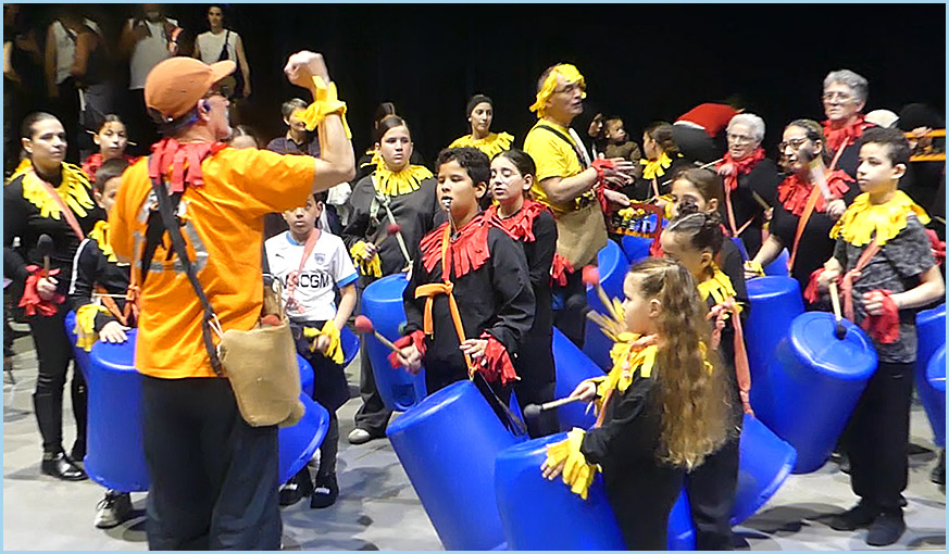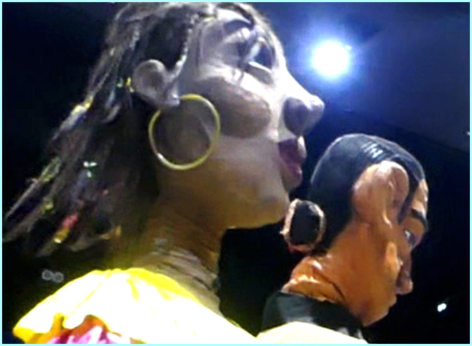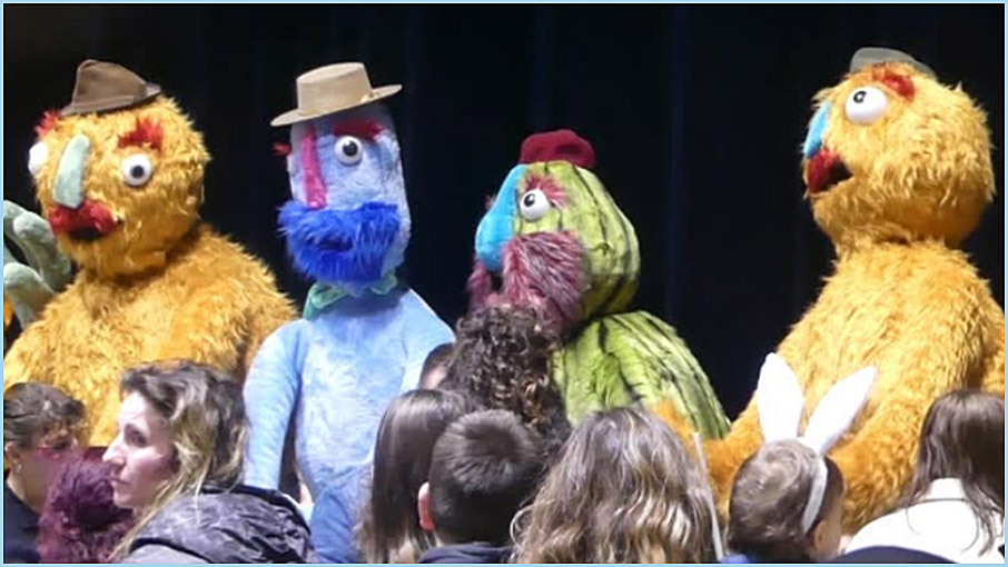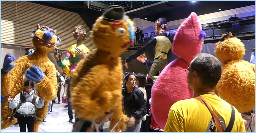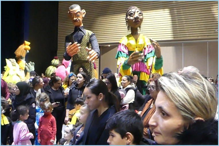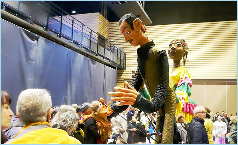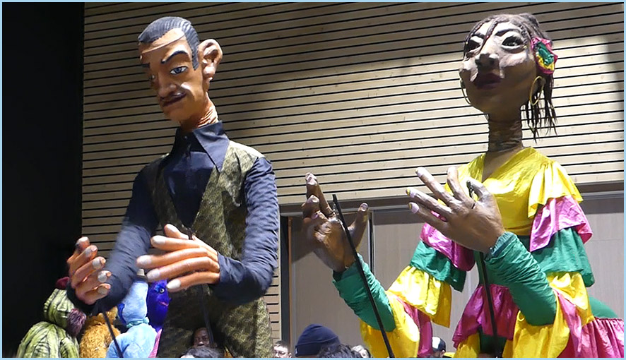 marionnettes géantes, à la batucada, aux grosses têtes du Foyer