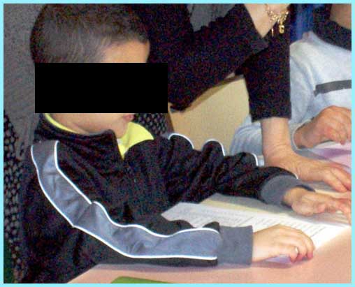 Durant une journée, quatre classes élémentaires ont successivement travaillé sur le thème du mouvement, illustré par une œuvre accrochée au mur : un motocycliste et son passager habilement esquissés en noir et blanc. Ce remarquable tableau monochrome est dû à Belkacem Boudjellouli, artiste peintre, établi à Sète, qui est aujourd’hui accueilli à Giono (il a déjà exposé à Bollène en 1996 via le Centre d’art du Crestet).