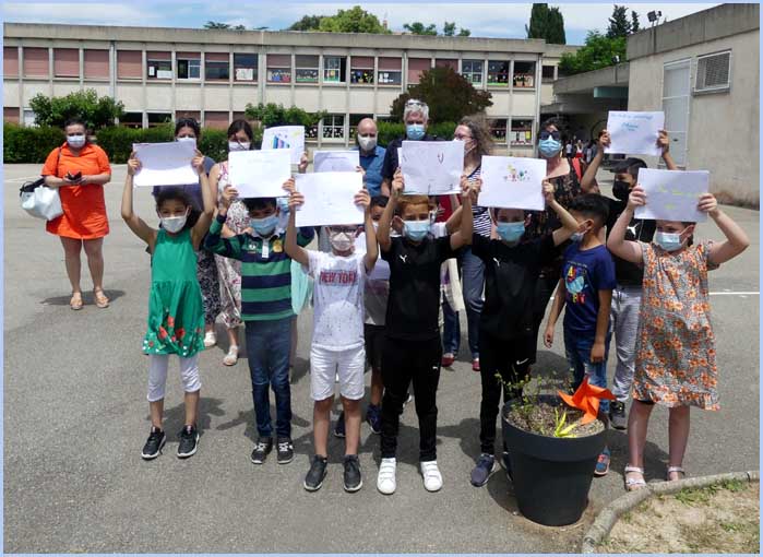 ![]() ![]() ![]() Au centre : Audrey Gaïde (enseignante Giono) et Mireille Bastet (DDEN-OCCE) |