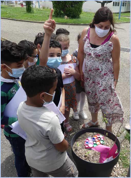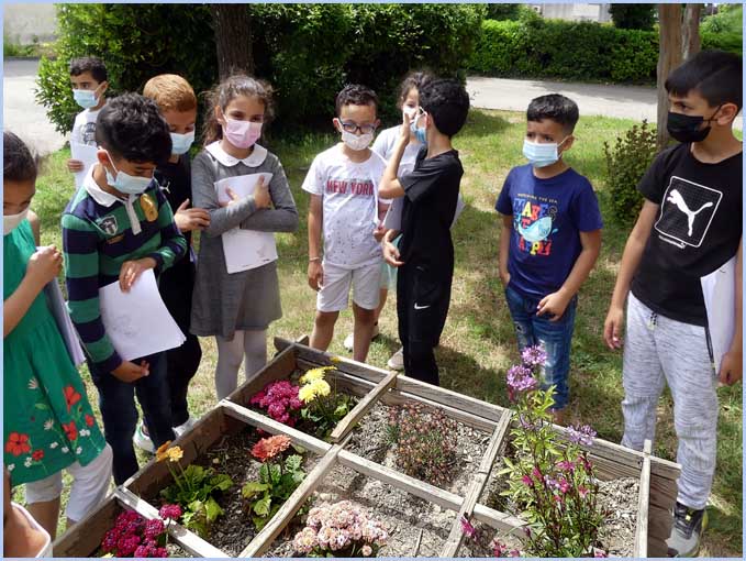 ![]() Mini-cultures florales et potagères, réparties dans la cour de l'école. |