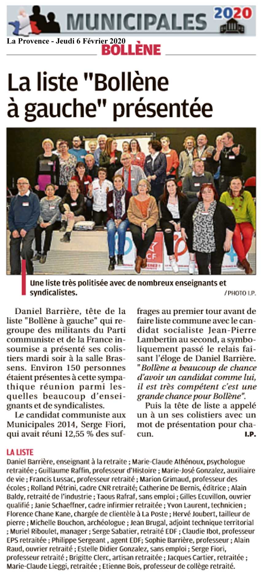 Mardi 4 Février 2020 Présentation de la liste "Bollène à gauche" ![]() |