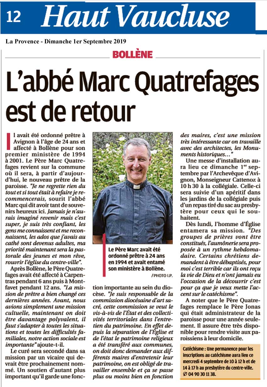 Un déferlement de sympathie autour l’abbé Marc de retour à Bollène !