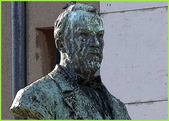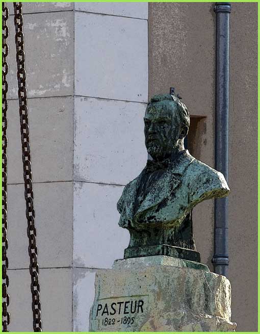 Dans les années 80, la statue est déracinée et réimplantée dans la haute ville, à proximité de la chapelle Mont Calvaire des Trois Croix. Cet exil n’est plus à l’ordre du jour. D’où le retour du buste, aujourd’hui, dans son quartier initial, à l’autre bout de l’avenue Pasteur, selon un axe oblique dirigeant le regard de la statue vers le nord, au lieu d’origine. La boucle est fermée et l’hommage au grand homme de science est sauf !    J. P.
