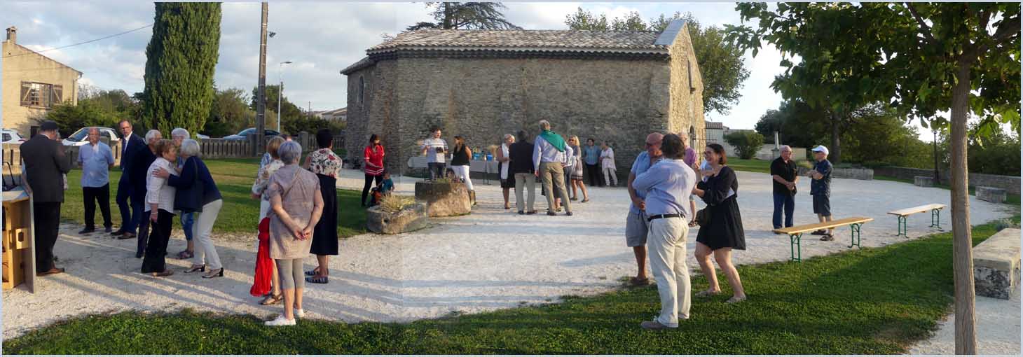 Vendredi soir, à la chapelle des Trois Croix, ont été lancées les journées du patrimoine. A cette occasion, une cérémonie était consacrée à l’inauguration du « Jardin Jacques Pradal » qui jouxte le saint lieu. Le dévoilement d’un panneau en présence des élus était suivi d’une évocation par Claude Raoux, premier adjoint au maire : « Nous honorons un illustre Bollénois, Jacques Pradal (1924-1911) en attribuant son nom au jardin de la chapelle des Trois Croix ou Notre-Dame du Calvaire. Il fut un entrepreneur bollénois, apprécié pour ces travaux de peinture et de décoration dans la ville et ses environs. Dans les années 70, il fut président du Syndicat d’initiative qu’il propulsa en Office de tourisme pour que Bollène rayonne davantage.
