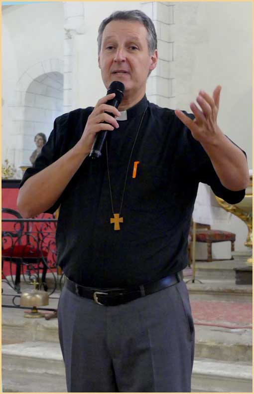 ![]() ![]() L'abbé Marc y met toute sa ferveur, ses ouailles sont toute ouïe. |