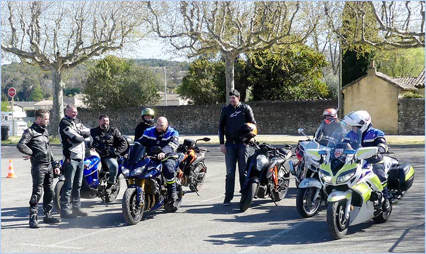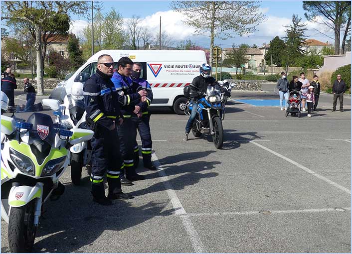 Sous l'égide de la Préfecture de Vaucluse et de la Sécurité routière, sont périodiquement organisées dans le département des journées itinérantes et gratuites de sensibilisation, proposées aux usagers des deux roues motorisées. Ceci afin de prévenir l'accidentalité, accrue durant les beaux jours. Cette louable "Reprise du guidon" vient de faire étape à Bollène sur la place du 18 Juin (photos), où s'alignaient divers ateliers : maniabilité, freinage d'urgence, équipement, entretien, premiers secours, etc. Le tout sous l'oeil de professionnels avisés : CRS, sapeurs-pompiers, secouristes, employés municipaux, inspecteurs du permis de conduire. Une quarantaine de motards est venue renforcer sa maîtrise dans une cordiale ambiance, avec la perspective d'un airbag à gagner pour le plus averti. J. P.