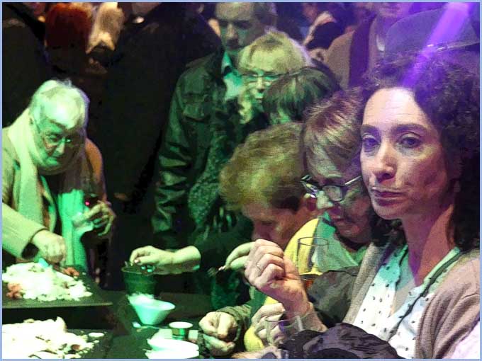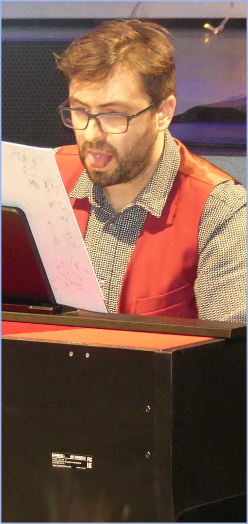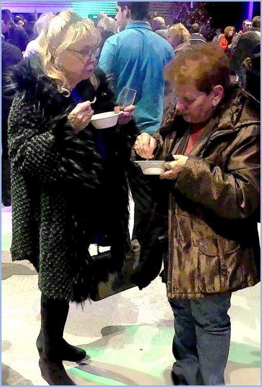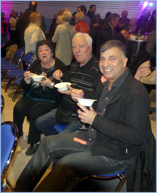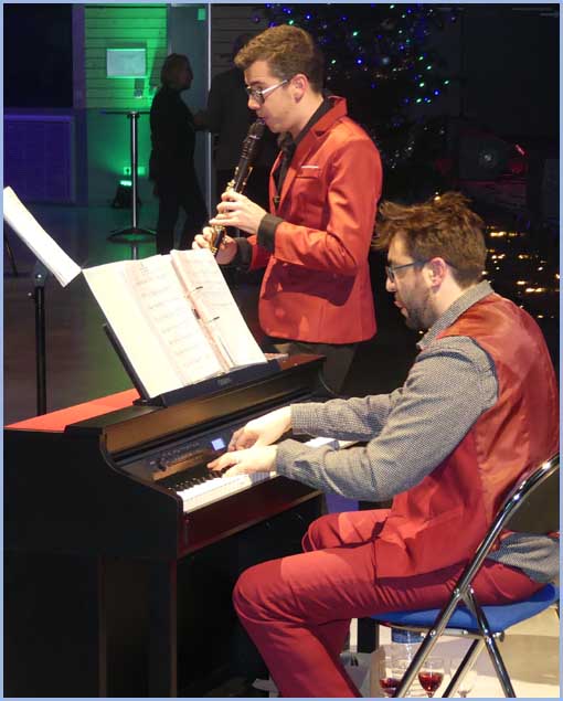 année. Les gourmands ont en vain attendu les desserts... largement compensés, entre autres, par un hyper gratin dauphinois ! L'an prochain, promis, on rééquilibrera avec des tartelettes sucrées. Et les musiciens ? Ils méritent beaucoup mieux qu'un fond d'ambiance agréable... Ceux qui ont assisté au récent concert du Nouvel An les auront reconnus ( |