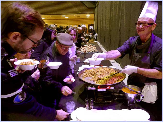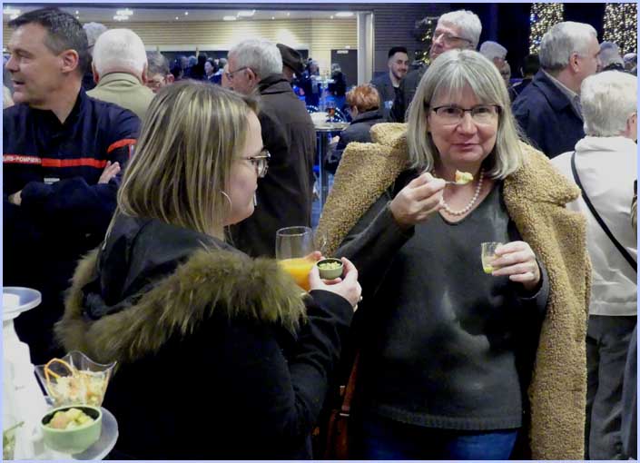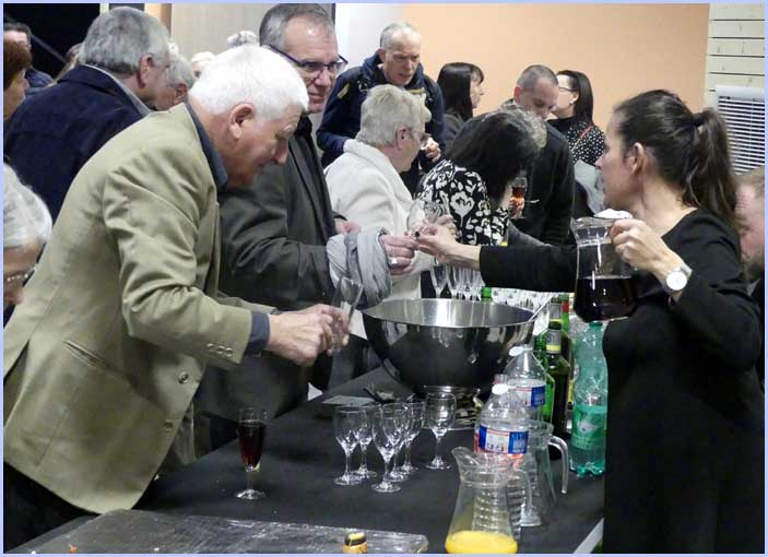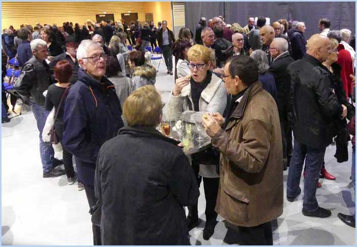 ![]() ![]() Ils sont venus en masse. Assis ou debout, ils opinent (mentalement) du bonnet et salivent (discrètement) en lorgnant (du coin de l'oeil) le buffet prometteur... |