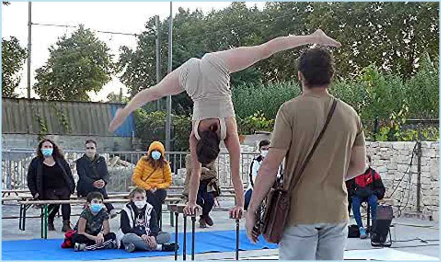 Un public représentatif regroupait des élus locaux, responsables d’associations et simples citadins, successivement gratifiés par trois interventions artistiques : « Ven » par la Compagnie Si Seulement avec une couple de danseurs acrobates aux chorégraphies envoûtantes autour d’un mât chinois, « La cuisinière » par la Compagnie Tout en Vrac avec un cartoon théâtral en solo comique rétro des années 50, un concert avec des petites histoires délicieuses par le trio (chant-violon-accordéon) de La Belle Lurette.  J. P.