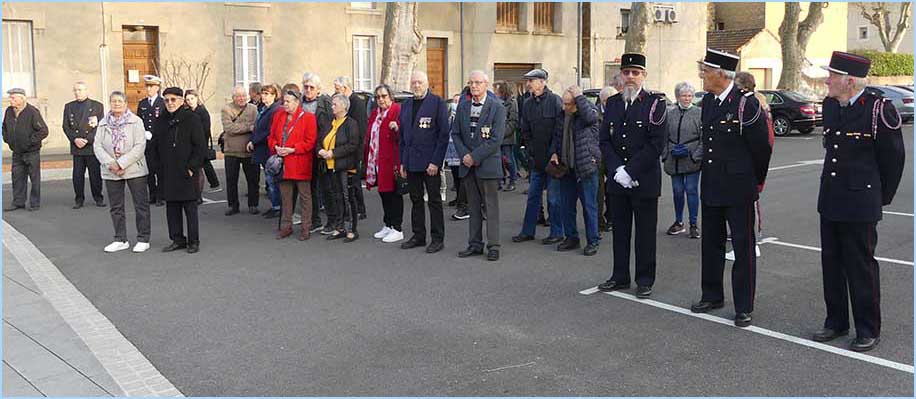 Les 60 ans du Cessez-le feu en Algérie ont fait l'objet d'une commémoration, en présence du maire Christian Peyron et des membres de son conseil, d'anciens combattants, du lieutenant Teva Prom représentant le colonel Patrice Huguet de la BA 115 d'Orange, et d'une fidèle population. Parti de l'hôtel de ville, un défilé s'est rendu devant la stèle dressée à la mémoire des morts pour un dépôt de gerbes, suivi de la lecture du message officiel, d'une minute de silence et de l'hymne national. Un pot amical, offert à la mairie, a conclu la cérémonie. J. P.