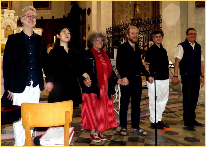 Réduite à six exécutants, direction comprise, la tournée 2021 ne concerne plus une chorale, mais l’ensemble vocal et instrumental Delta. Deux années d’interruption et les restrictions sanitaires sont passées par là. Pour autant, l’irrépressible Coline Serreau dirige toujours ses adeptes du beau chant avec autant de fougue. Un répertoire éclectique couvre allègrement les siècles du moyen âge à l’ère contemporaine. L’humour côtoie l’érudition avec des anecdotes justifiant des partitions savoureuses. C’est du vécu qui tranche sur la rigueur du classique. Monteverdi, Haendel, Bach, Schubert, Rossini y trouvent une fraîcheur inespérée. Des gospels pigmentent le tout d’une belle note revendicative. Cela dure depuis quinze ans dans les églises de villages en Drôme, Vaucluse et Ardèche. Au cœur d’une cinquantaine d’étapes, ce lundi soir à Mondragon, pour la 9ème fois, l’église Sainte-Trophime accueillait l’évènement musical, via l’organisation du Syndicat d’initiative de Bollène. J. P. A consulter : http://choraledudelta.com |