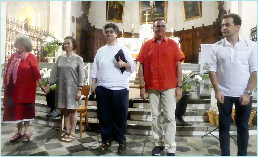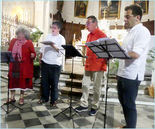 C'est l'événement musical incontournable qui, chaque année, sort le village de sa somnolence estivale, par l'entremise du Syndicat d'initiative de Bollène qui assure la logistique au niveau cantonal et dirige le public vers Mondragon. Car il se trouve que la localité se situe sur la trajectoire des concerts ambulants, proposés aux ruraux en juillet et août par l'ensemble vocal Delta (ex-célèbre chorale du même nom). Ce dispositif nomade n'emprunte donc que des chemins de traverse, via des églises et chapelles offrant une belle acoustique. Répondant parfaitement aux critères, depuis 11 ans, l'église mondragonnaise Sainte-Trophime sert d'écrin à cette programmation bucolique, qui pioche allègrement dans un inépuisable répertoire musical, du moyen âge à l'ère contemporaine. Aujourd'hui réduits à cinq ou six exécutants (contre jadis une bonne vingtaine), toujours sous la houlette de Coline Serreau (par ailleurs cinéaste de renom), les choristes s'aventurent à leur façon chez D'Aquin, Monteverdi, Mozart, J. S. Bach, Haendel, Offenbach, Rossini, Schubert, etc. Du jazz et des gospels s'y intègrent tout naturellement. C'est un peu brut de décoffrage pour les mélomanes guindés. Mais tellement chaleureux pour entamer ce soir-là une seconde décennie ! J. P.
