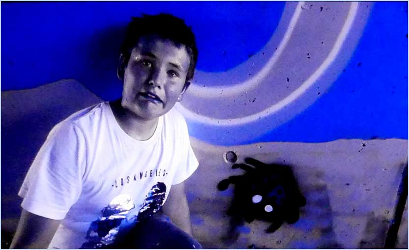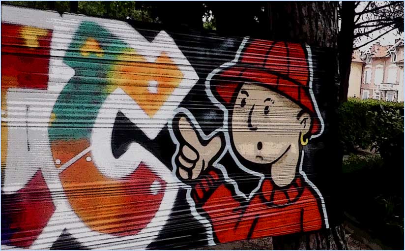 Nous avons gardé le meilleur pour la fin avec ce que Bernard Dethan, membre communicant de Cinébol, nomme « la construction d’un événement ». Or celui-ci passe par le Res’In (Réseau intercommunal) et porte sur de multiples fresques murales, réalisées dans les rues de la cité par une douzaine de préados et ados de l’espace jeunes de la Ville, Etalé sur une année, ce jaillissement juvénile prend sa source en septembre 2019, lors d’une visite de « L’expo de Ouf » à Nîmes, consacrée au street art, dérivé du graffiti. Frappés par cette forme artistique sans barrière, mais aux codes précis et respectueux, les jeunes Lapalutiens ont démarré leur projet cet été sous la houlette de l’animateur Anthony Gérard et son bras droit Maïe.