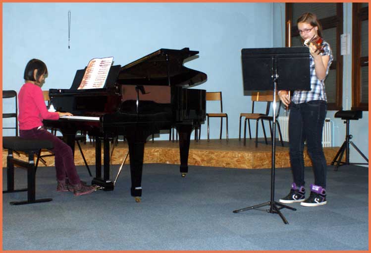 En une courte édition d’a peine six partitions, avec l’intervention d’invités jouant d’un autre instrument, cette audition a fort bien illustré le propos : une mélodie enfantine (piano quatre mains), un tango (piano-percussion), une autre mélodie (piano solo), Plaisir d’amour et chanson du gondolier de Mendelssohn (piano-violon), sérénade de Beethoven (piano-flûte).