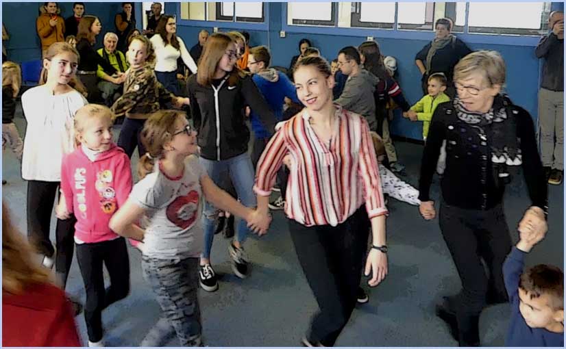 Chauffés à souhait, danseurs et spectateurs ont fini par participer aux danses collectives (bourrée limousine, sauts béarnais, gibouli provençal). Au final, une fameuse valse (de Luis Llach) et une polka-farandole hybride (Italie-Provence) ont conclu cet extraordinaire intermède.   J. P.
