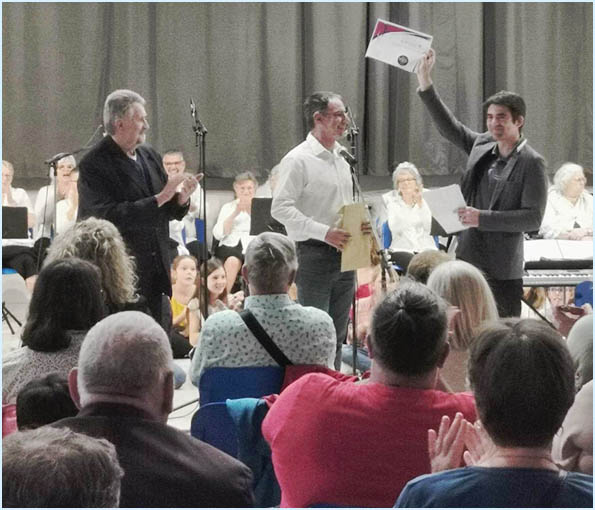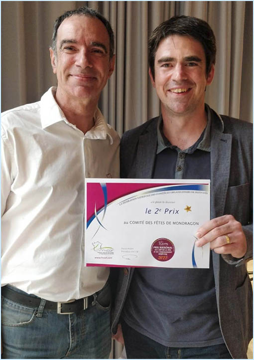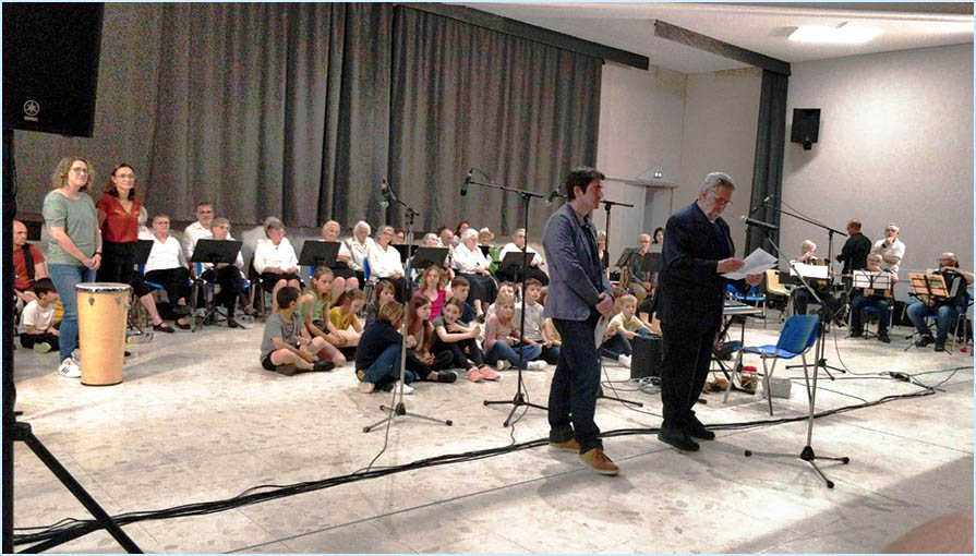 L'évènement a pour cadre le concert du Drac, initialement prévu à ciel ouvert au théâtre de verdure, mais replié à la salle des fêtes à cause de la pluie. Un programme diversifié de pages classiques et traditionnelles s'est donc confortablement déroulé, avec de nombreux exécutants venus des classes de l'école de musique intercommunale : éveil musical, batucada, accordéon, auxquels s'est joint un renfort vocal du CHU de Pont-Saint-Esprit. Encouragé par l'éloge d'introduction du maire Christian Peyron, ce bel intermède musical donnait le coup d'envoi de la 51ème fête médiévale du Drac, étalée sur les jours suivants (12, 13 et 14 mai) et présentée en détail par Julien Seiwert, président du Comité des fêtes. Le tout se couronne d'une haute distinction : la remise en mains propres du second prix par M. Mounet, délégué vauclusien de la Fédération nationale des comités et organisateurs de festivités (FNCOF), suite au Trophée remporté par la 50ème fête du Drac en 2022. Voilà qui donne des coudées franches au Comité des fêtes de Mondragon, classé 2ème sur quelque 3 600 associations analogues en France ! Contact : 04.90.30.19.41 et https://www.facebook.com/ComitedesfetesMondragon. J. P.