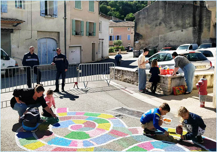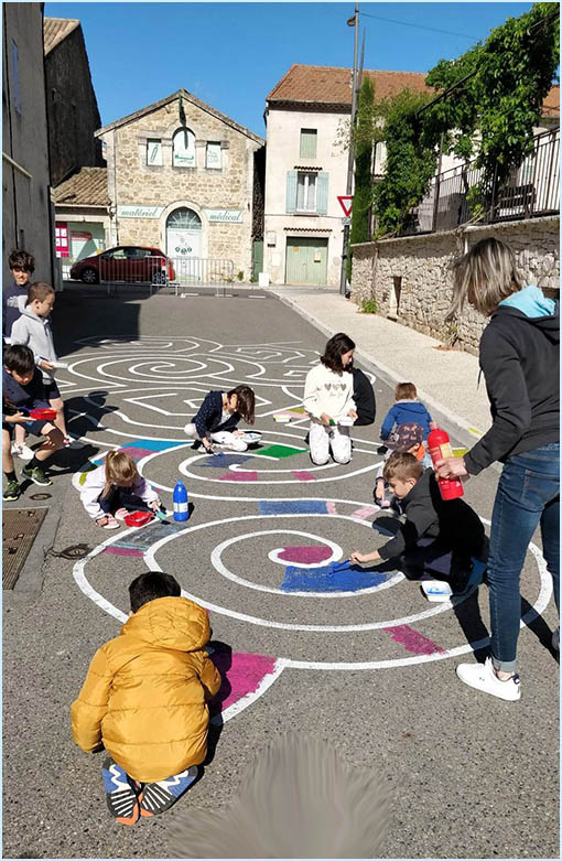 labyrinthe sur le bitume du centre ville (inspiré des arabesques de