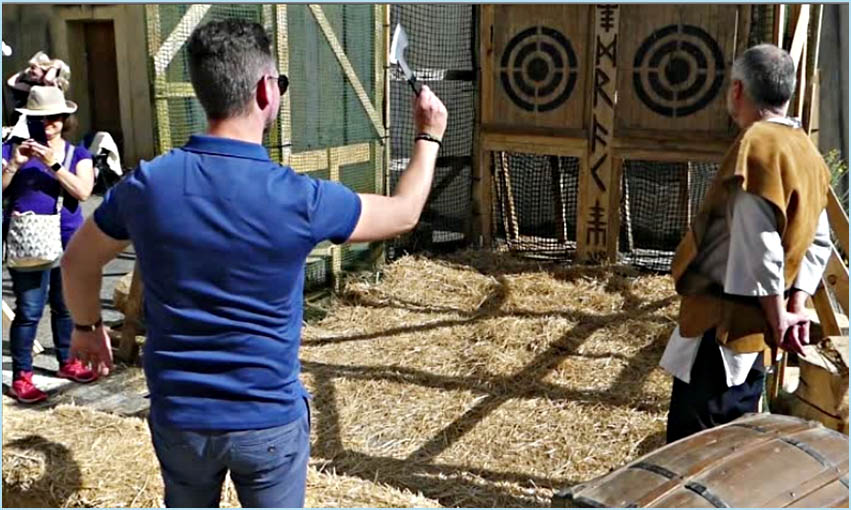 ambulants, jeux de bois d'antan, lancer de haches, tir à