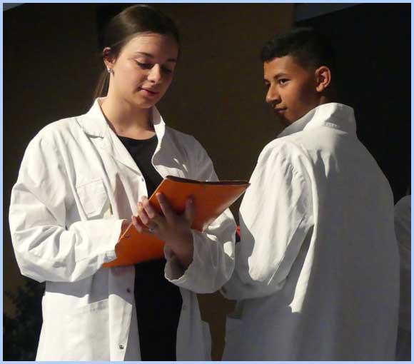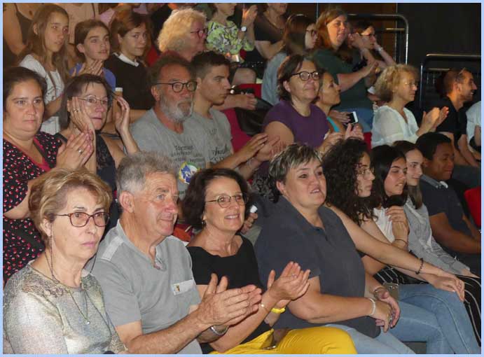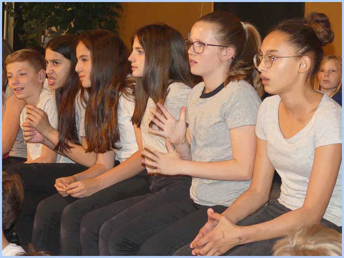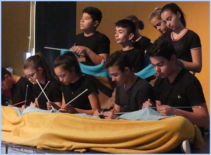 Du CM2 à la classe de seconde, quelque 120 élèves et une partie du corps enseignant sont venus des collèges Eluard et Boudon, du lycée Aubrac et de l’école Giono à Bollène ; et de l’école Pergaud à Lapalud. Trois comédiennes professionnelles, Sarah Nedjoum et Elsa Kmiec (EDS) et Nicoletta Estevan Kaci (Cie Hauts Parleurs) ont mis en scène « Piter et Léna », pièce chorale écrite par Alain Ubaldi.