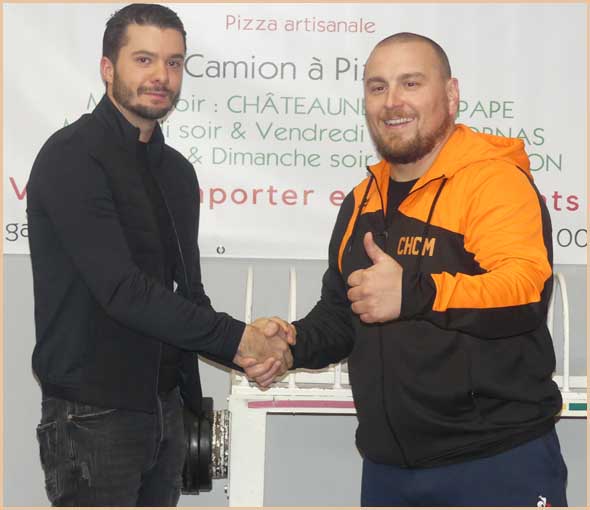 Du coup, notre sémillant pizzaïolo s’est senti mûr pour élargir l’aventure gourmande jusque dans les milieux sportifs de son village. Par un don financier, le voici nouveau sponsor du Cercle haltérophile et culturiste de Mondragon (CHCM). Sympa, non ?