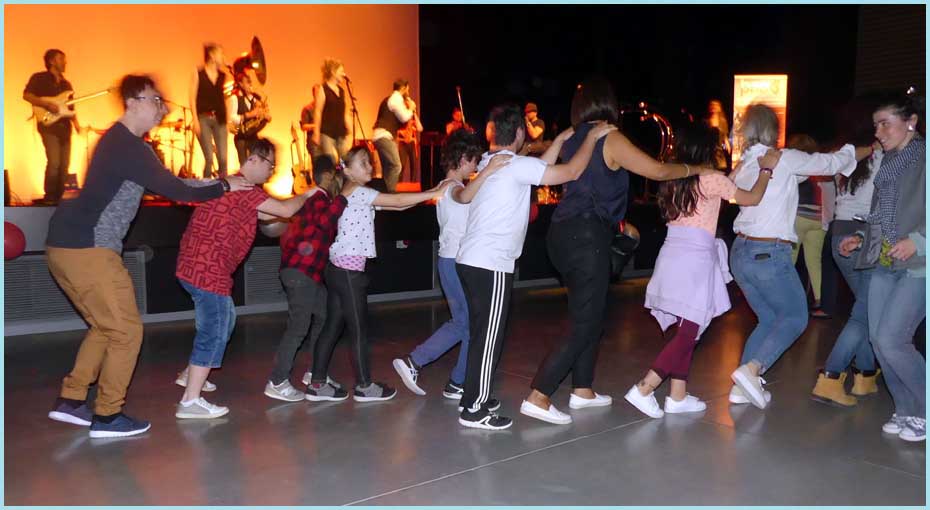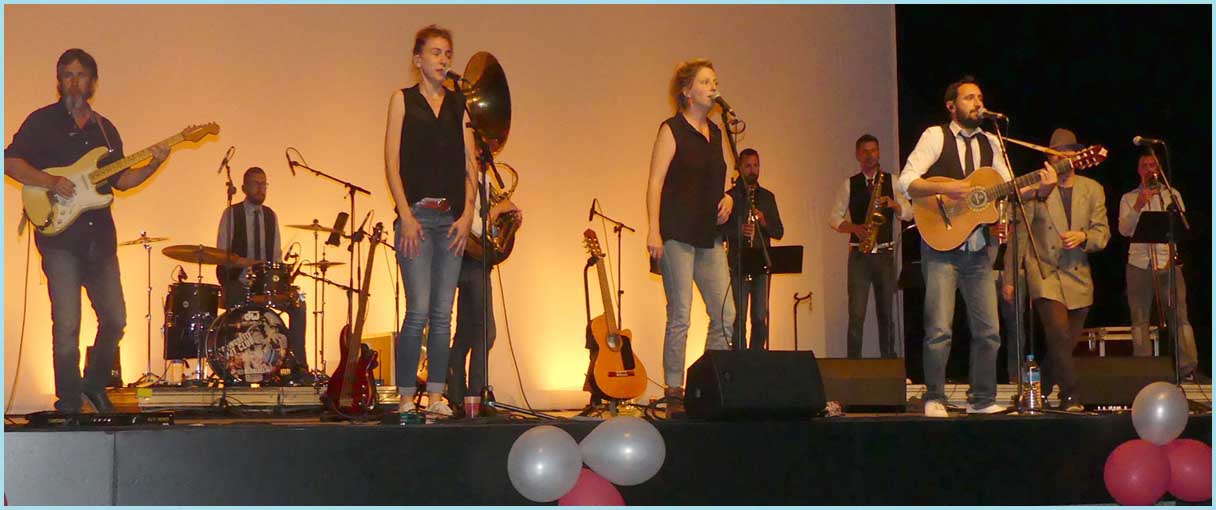 Apparu en 2015 dans la sphère de la Grosse Tambouille, ce collectif d’artistes regroupe à ce jour une douzaine de membres du Sud-est, dont cinq chanteurs et sept instrumentistes issus de l’Orchestre de la Marine de Toulon. Ils ont du tonus à revendre, et donc de quoi en offrir par mimétisme aux personnes fragilisées par un handicap. Ce processus illustre une anecdote. Jean Schmutz, concepteur du bao-pao, présent au concert, a pour fils le tromboniste de la Guinguette Hot Club, qui est ainsi venu jouer à Bollène avec sa bande de copains, chanteurs et musiciens.