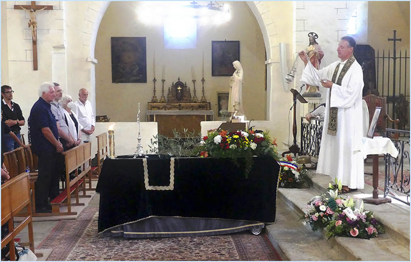 (Gérard Blanc (Tréteaux des Grès) et divers proches du défunt.