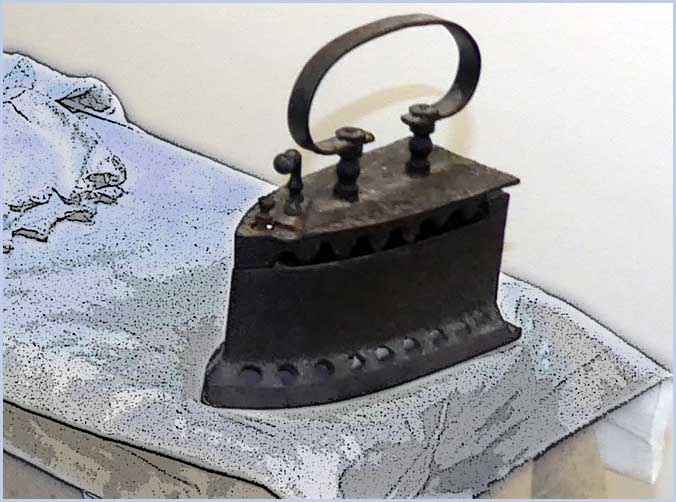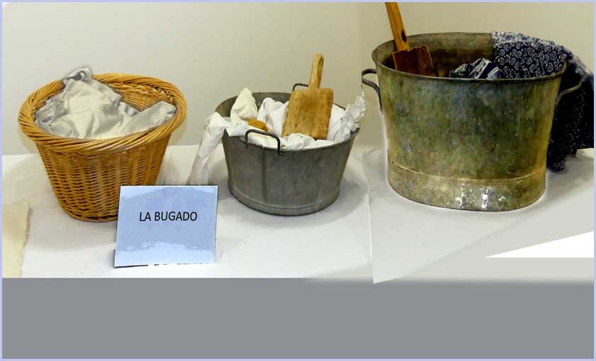 bassine à linge, machine à coudre, fer à repasser, etc. Encore un paradoxe qui exalte d’humbles tâches, essentielles à la vie !