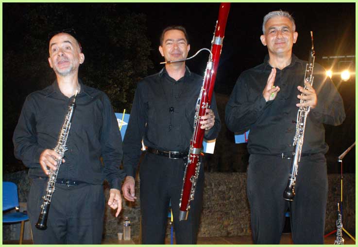 Voici l’Ensemble Besozzi, dont l’âge est celui du festival : 19 ans. Il réunit trois musiciens ; Marc Badin, Patrice Barsey et Hervé Issartel. Ce sont des hautboïstes à pas variables : hautbois, hautbois d’amour, cor anglais, basson.
