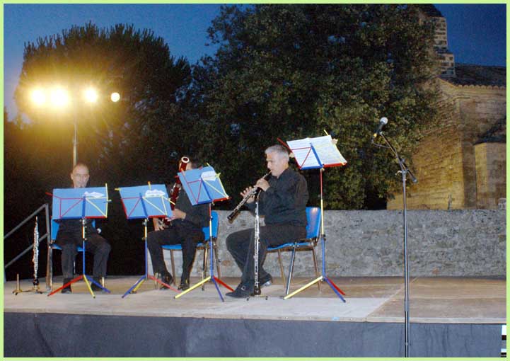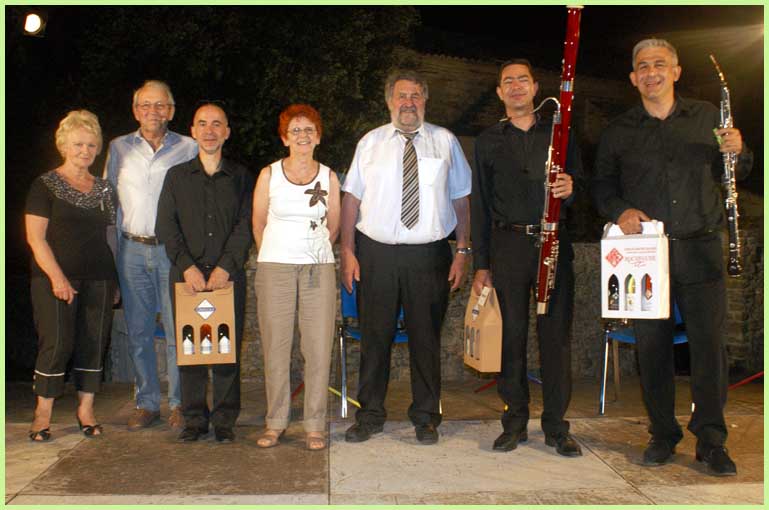 Dans un registre surprenant, où les vents se substituent parfois à la flûte ou au violoncelle, ont donc été joués, ce beau soir-là à la belle étoile : Rossini (l’échelle de soie) et Geminiani (sonate), deux compositeurs moins connus, Widerkehr et Flégier (trios) et des musiques de films dont celles de « Il était une fois dans l’Ouest » et « Chantons sous la pluie ».