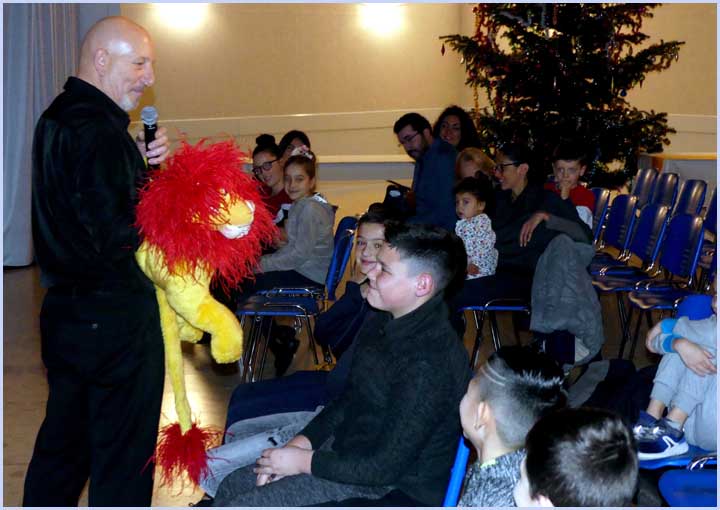 à la salle des fêtes autour de l’arbre de Noël pour les enfants des