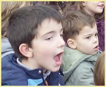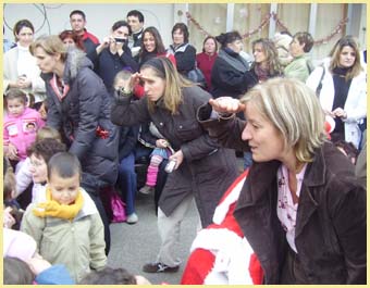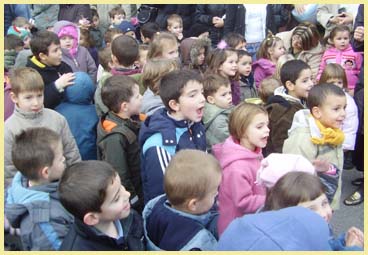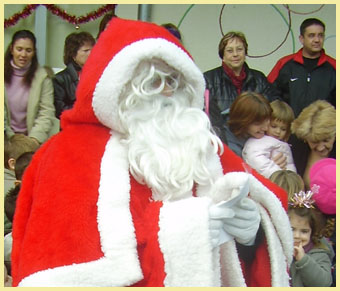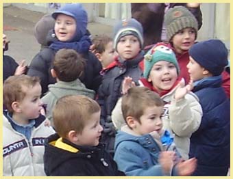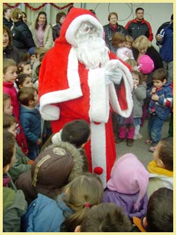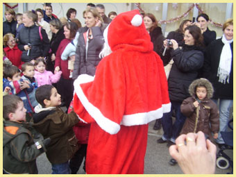 Le voilà ! On lui chantera d'abord trois jolis chants de Noël. Puis suivront un goûter et une distribution de friandises dans les classes. |