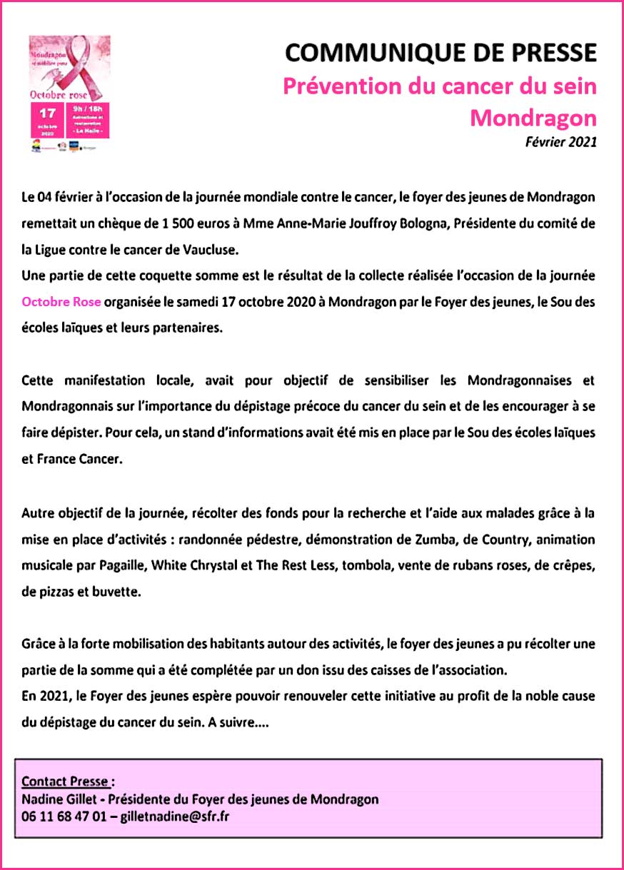 Ligue contre le cancer de Vaucluse, par le Foyer des jeunes de Mondragon