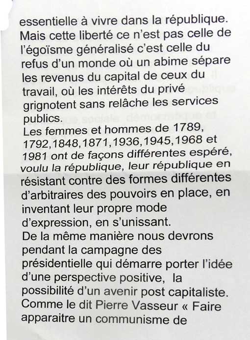 PCF de Bollène-Valréas ne manque jamais sa prise de parole, suivie du