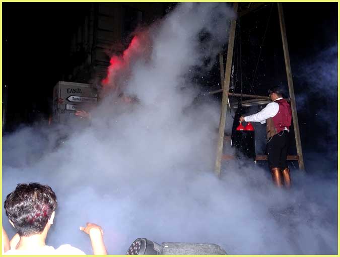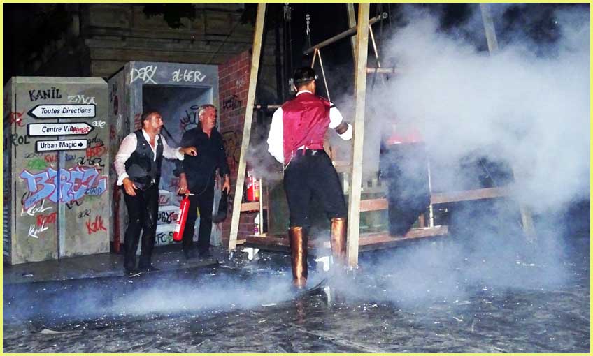 Feignant d’avoir la trouille de devoir se produire en public, il a d’abord salué la foule en déclarant n’avoir pas effectué cet exercice en direct depuis quelque temps. Plus habitué aux confortables prestations télévisées du Grand cabaret de Patrick Sébastien, il se devait en effet de ne pas décevoir le raz-de-marée bollénois, venu se repaître de ses remarquables facéties qui tordent le cou au train-train des événements rationnels.