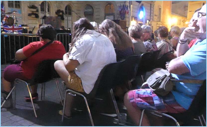 Une assistance honnête rassemblait toutefois les fans, côtoyés par la clientèle des troquets mangeant leurs pizzas et les habitués des Polys bollénoises, invariablement arrimés par la gratuité des spectacles, offerte par la Ville.