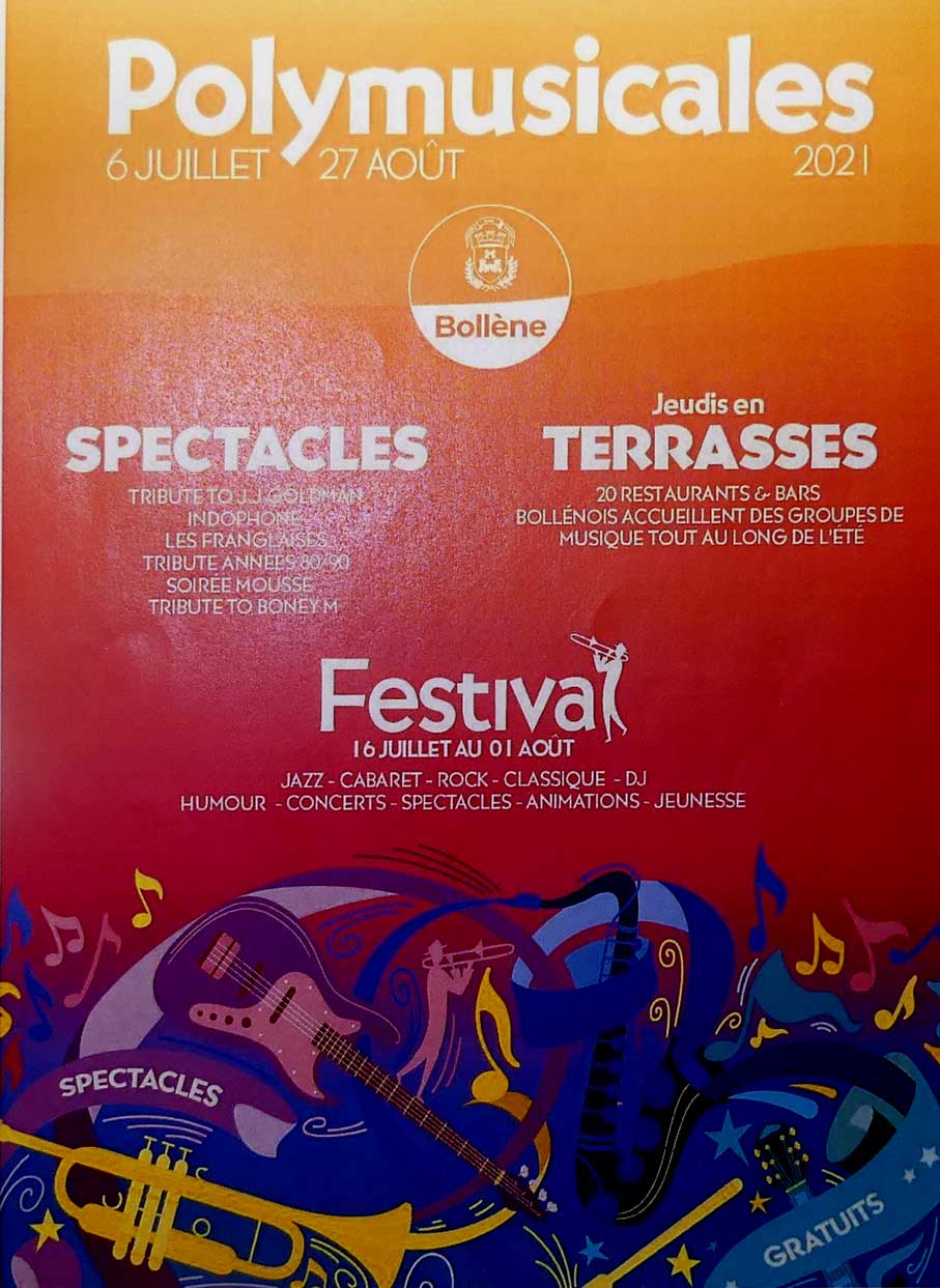 de Bollène - Polymusicales - Vendredi 28 Mai 2021 Les Polymusicales du 6 juillet au 27 août ![]() |