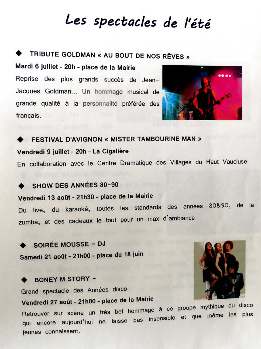 Axée sur l’assouplissement des contraintes sanitaires, une conférence de presse optimiste à l’hôtel de ville nous a dévoilé le contenu des prochaines Polymusicales bollénoises. Anthony Zilio, maire, et Françoise Roulet, adjointe à la culture, y ont défendu « une nouvelle dynamique itinérante en différents quartiers. » D’où cette programmation gratuite et foisonnante qui s’étend du 6 juillet et 27 août. Avec une vingtaine de spectacles et autant de Jeudis en terrasses. Le tout dispatché en différents lieux adaptés : place de la Mairie, place du 18 Juin, Cigalière, cour Florence Forns, bibliothèque municipale, terrasses de bars et restaurants. Souhaitons bonne chance à cet embrasement populaire, fait de jazz, cabaret, rock, classique, humour et animations pour tout public. Cela débutera le mardi 6 juillet à 20 heures, place de la Mairie, avec Tribute Jean-Jacques Goldman "Au bout de nos rêves". La suite sera décortiquée et annoncée selon le calendrier. J. P |