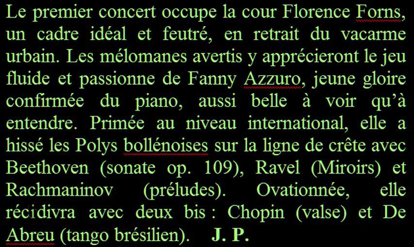 de Bollène - Polymusicales - Vendredi 23 Juillet 2021 Piano romantique et rock aux Polymusicales Un curieux binôme avec deux horizons successifs opposés ![]() |