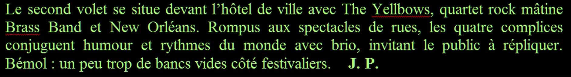 - Mercredi 28 juillet à 21h30 : Tribute rock Green Idiots,