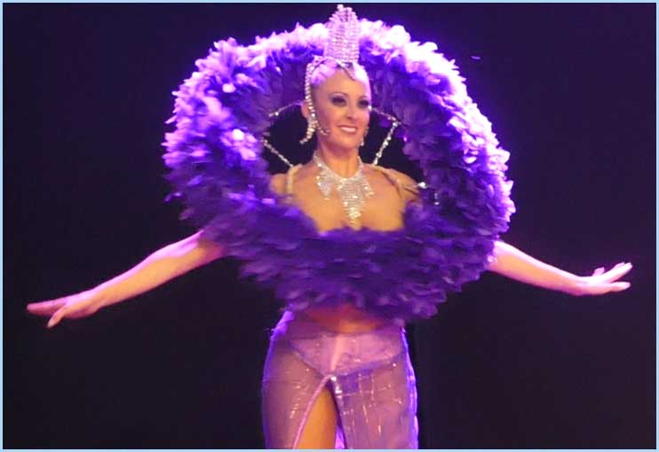 Une formule cabaret émoustille immanquablement les Polymusicales bollénoises. Ce lundi soir, en centre ville, cette règle d’or émerveillait les festivaliers, auxquels la Ville offrait un show éclatant, fait d’un enchaînement de numéros bien huilés. N’usurpant, pas son identité, cette parade merveilleuse se nomme « Belles et Magiques ». Ce féminin pluriel engage effectivement des créatures de rêve, parées de plumes et de strass, accouplées à des partenaires idéals. L'ensemble combine astucieusement danse, musique, humour et illusion. Il se réclame de Grégory et la fameuse revue Diam's et, entre autres, rend hommage à Charlie Chaplin et aux revues parisiennes d’antan, J. P.